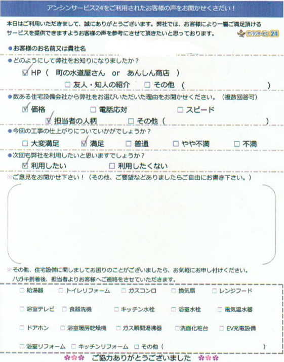 この度は、アンシンサービス24をご利用頂き誠にありがとうございます。