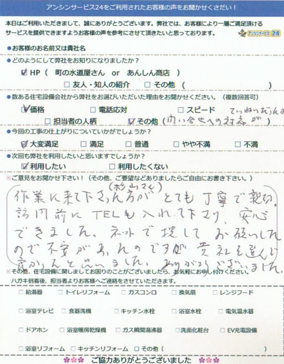 アンシンサービス24をご利用いただいたお客様の声をご紹介します!
